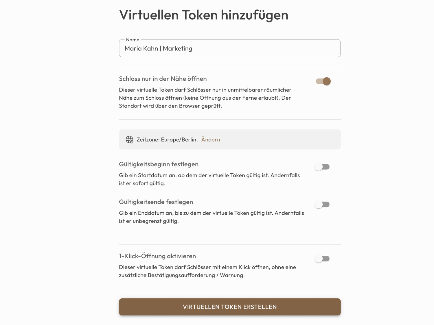 - die Tür mit Hilfe eines Smartphones oder eines Tokens zu öffnen - ganz ohne klassischen Schlüssel oder Zugangscodes.